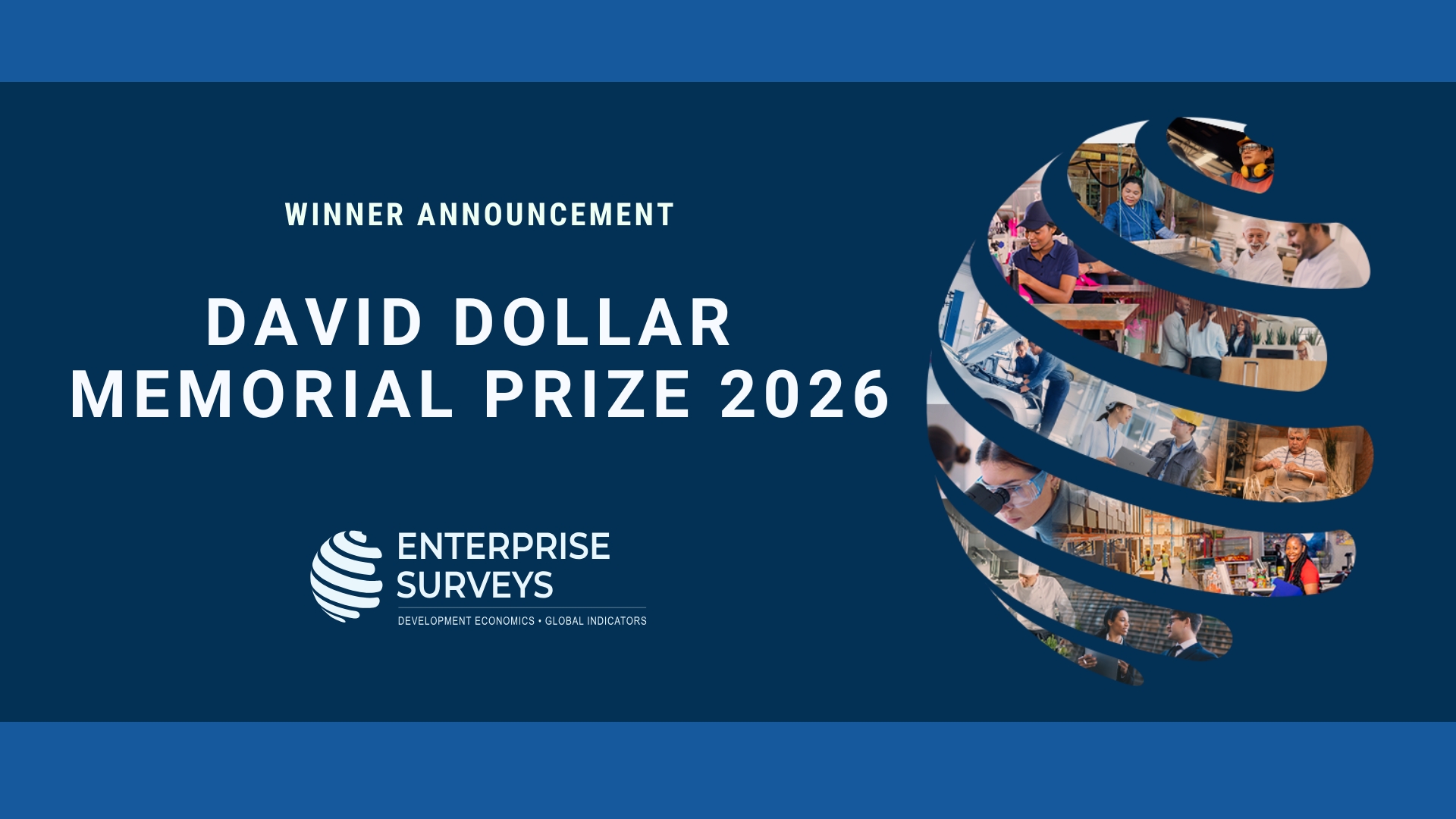 The World Bank's David Dollar Memorial Prize honors the memory and contribution of David Dollar, a distinguished economist whose career spanned UCLA, the World Bank, the U.S. Department of the Treasury, and the Brookings Institution. He was one of the pioneers in the World Bank’s focus on investment climate. Established in his memory, the prize encourages high-quality, policy-relevant research on private sector development.
